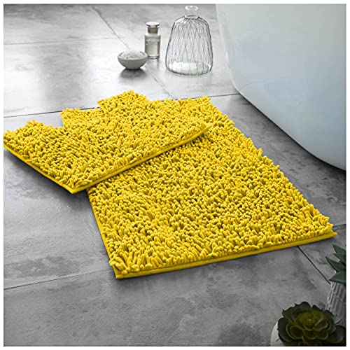 DEXI Badmatta Badrumsmatta, stor halkfri absorberande och mjuka golvmattor tvättbara chenille-mattor för badkar toalett duschrum entré, 61 cm x 109 cm ljusblå