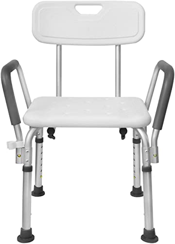 MCTECH Rektangulär duschpall, duschstol, badpall, höjdjusterbar badrumspall, duschhjälp med armstöd och ryggstöd, justerbar höjd för åldrar, gravida kvinnor, MC-HAG1017, vit, 1 st (1-pack)