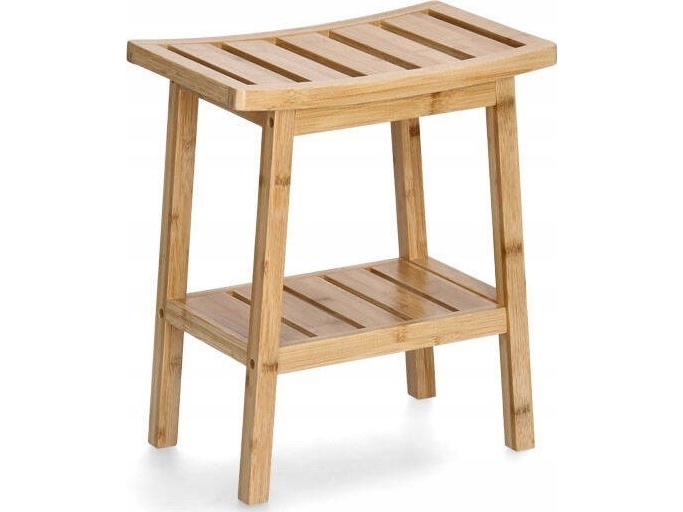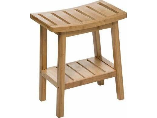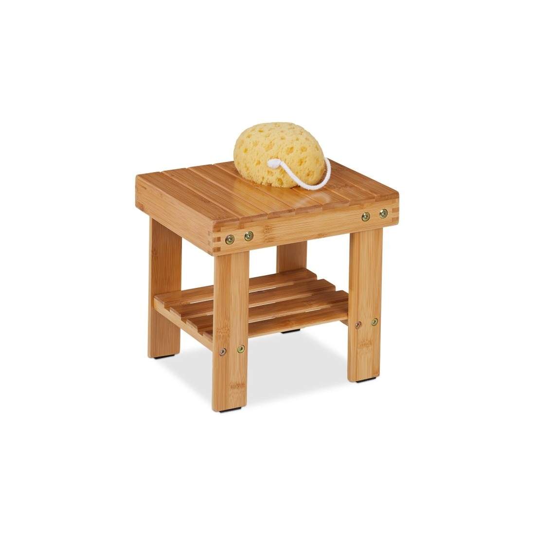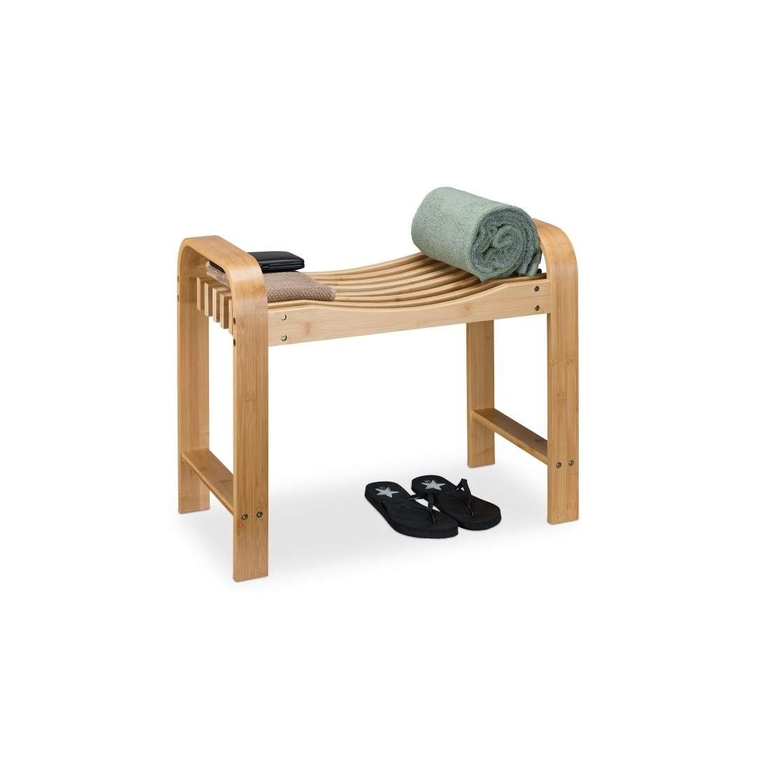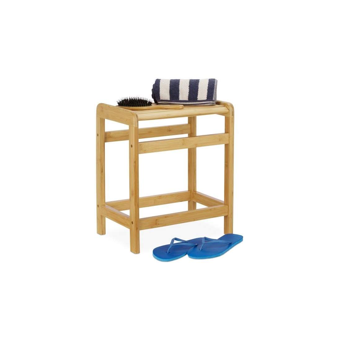 Relaxdays Badrumsbänk bambu, sittbänk badrum, hylla badrumspall trä, H x B x D: 45 x 66 x 40 cm, badrumsmöbler, natur