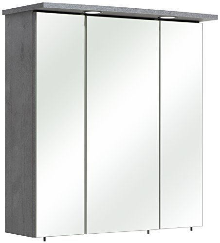 Pelipal badrumsspegelskåp Quickset 913 i betongutseende med LED-belysning, 65 cm brett | badrumsskåp med spegel, 3 dörrar och 6 hyllor
