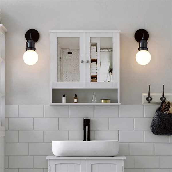 Vägghängt badrumsskåp med spegel – Vit, 50x16x66 cm