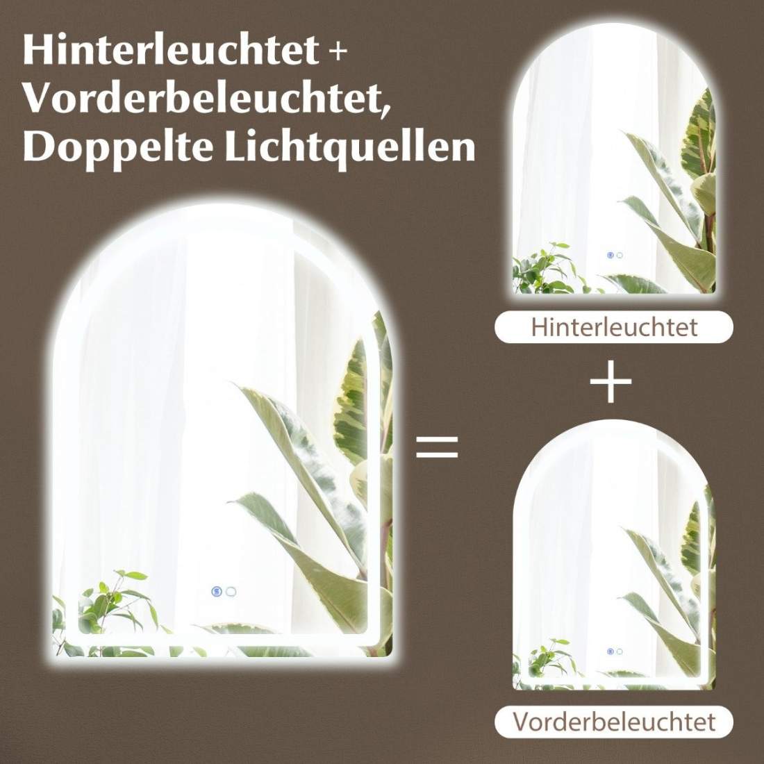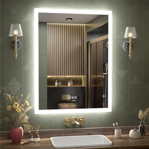 SONNI Badrumsspegel med belysning, dimfri väggspegel 60 x 80 cm, IP44 LED-badrumsspegel med touch kallvit/neutral vit/varmvit