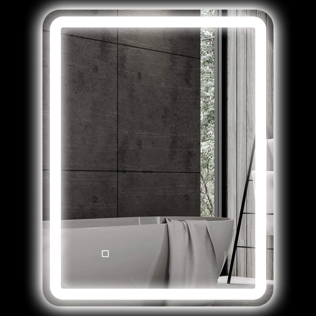 SaniteModar LED badrumsspegel 60 x 80 cm, badrumsspegel med anti-dimma, väggspegel med touch-brytare