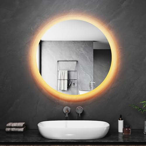 LUVODI LED-badrumsspegel rund 80 cm: rund spegel med bakgrundsbelysning och frontbelysning antidimma spegeluppvärmning, med 3 touch-brytare, dimbar ljusspegel varmvit kall vit neutral
