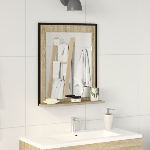 Badrumsspegel m. hylla brun ek 50x12x60 cm konstruerat trä