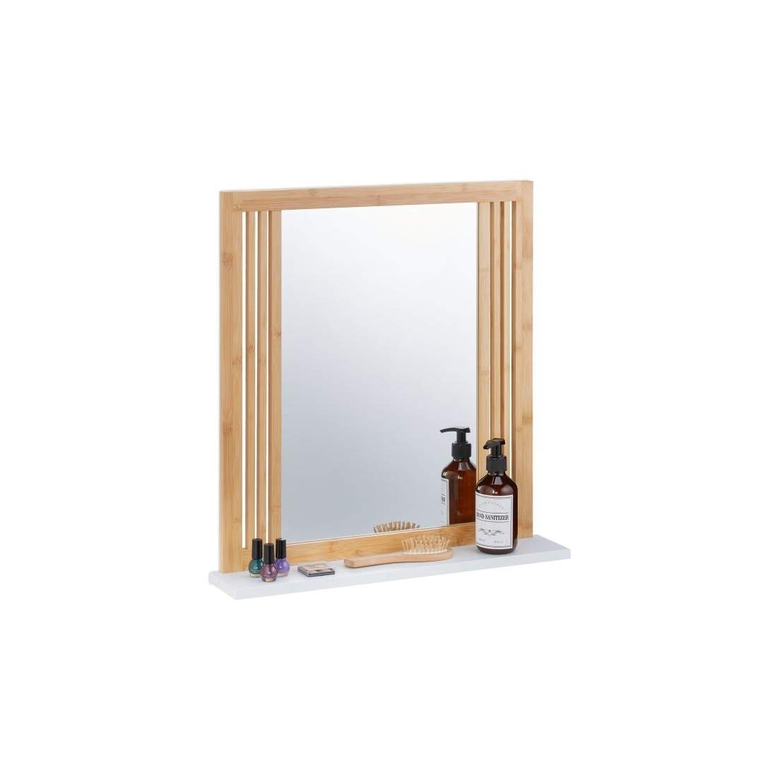 Relaxdays Badrumsspegel med hylla, bambu och MDF, rektangulär, H x B x D: 56,5 x 54 x 10 cm, spegel för upphängning, natur/vit, 1 styck