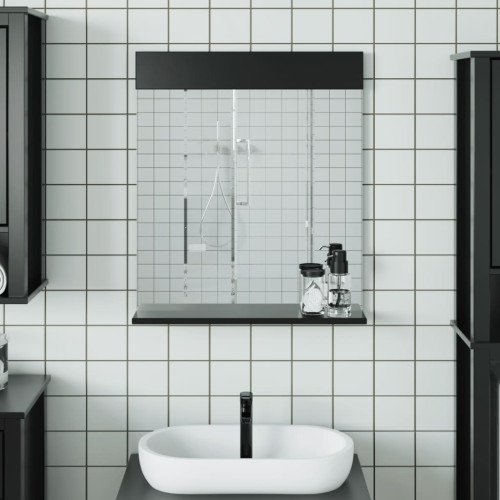vidaXL Badrumsspegel med hylla Svart 50 x 12 x 60 cm Konstruerat trä