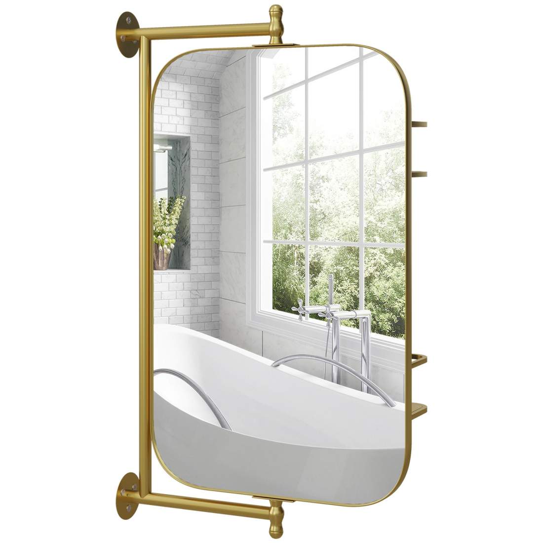 Vridbar Badrumsspegel med Hylla, Guld 40x66 cm
