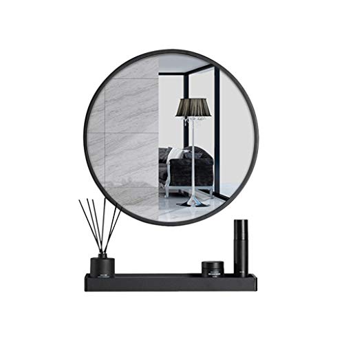 Badrumsspegel Hushållsbadrum Rund väggspegel Aluminiumlegering Hängspegel Metallförbandsspegel Sminkspegel Dekorativ spegel med hylla, svart, 40 cm