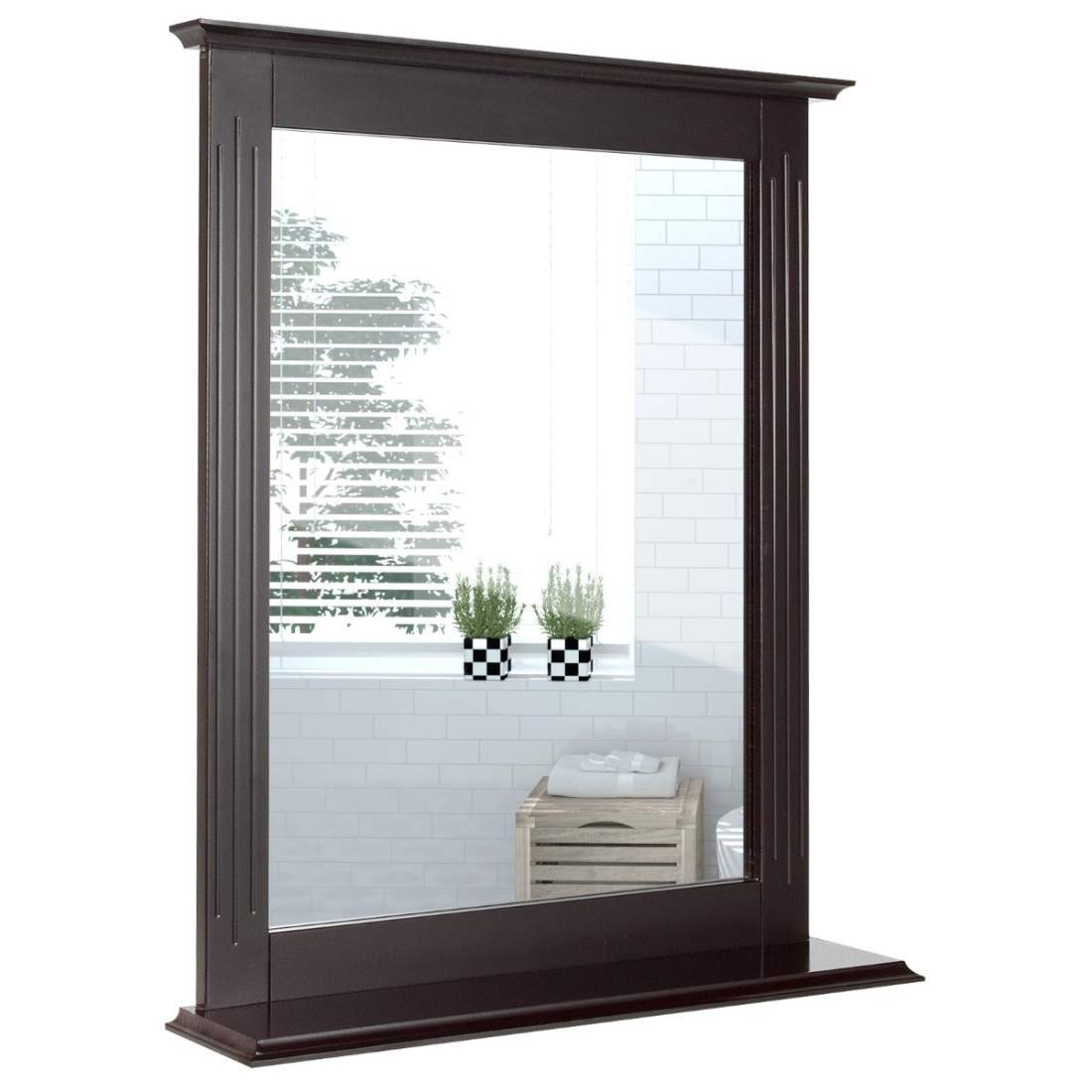 Badrumsspegel med hylla Rektangulär badrumsspegel Väggspegel 68,5 x 57 x 12 cm Brun