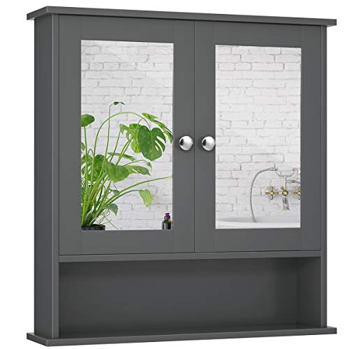 Costway Spegelskåp badrum, badrumsskåp med spegel, badrumsskåp med höjdjusterbar hylla, badrumsspegel, väggskåp badrumsmöbler, badrumsspegelskåp 58,5 x 56,5 x 13,5 cm (grått)