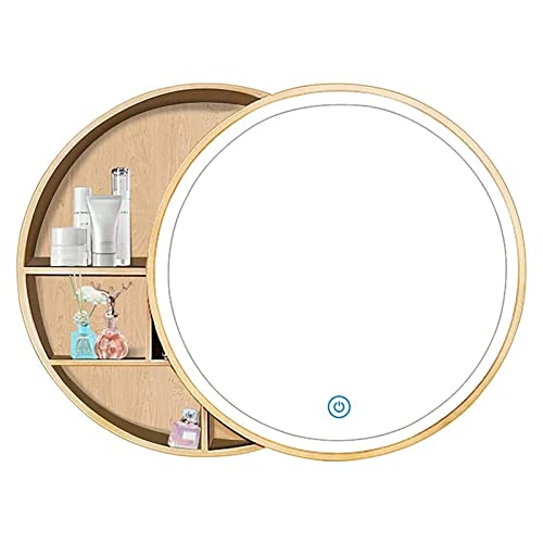 Sminkspegel Badrumsspegel - Skåp Badrumsspegel i massivt trä - Öppen dörr Intelligent rund spegelskåp med hylla Sminkbord Runt badrumsspegel Vägghängande