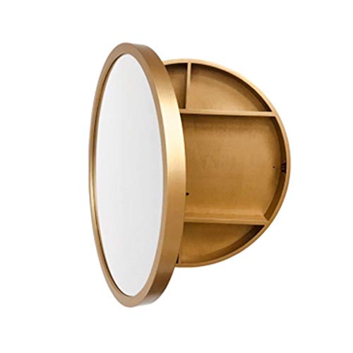Rund badrumsspegel med hylla, guld makeupförband, spegelskåp, 50 cm x 50 cm x 13 cm – snygg vägghängande för badrumsdekor