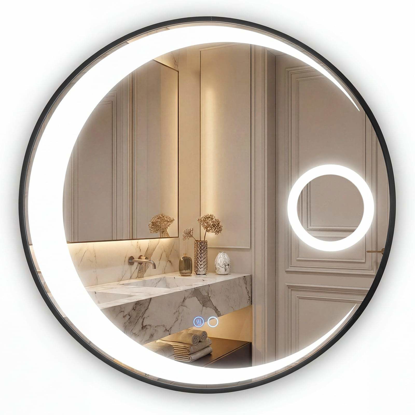 61 cm rund badrumsspegel – imfri, LED-lampor, förstoringsglas