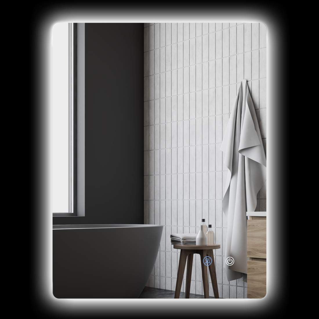 SaniteModar LED badrumsspegel 60 x 80 cm, badrumsspegel med anti-dimma, väggspegel med touch-brytare