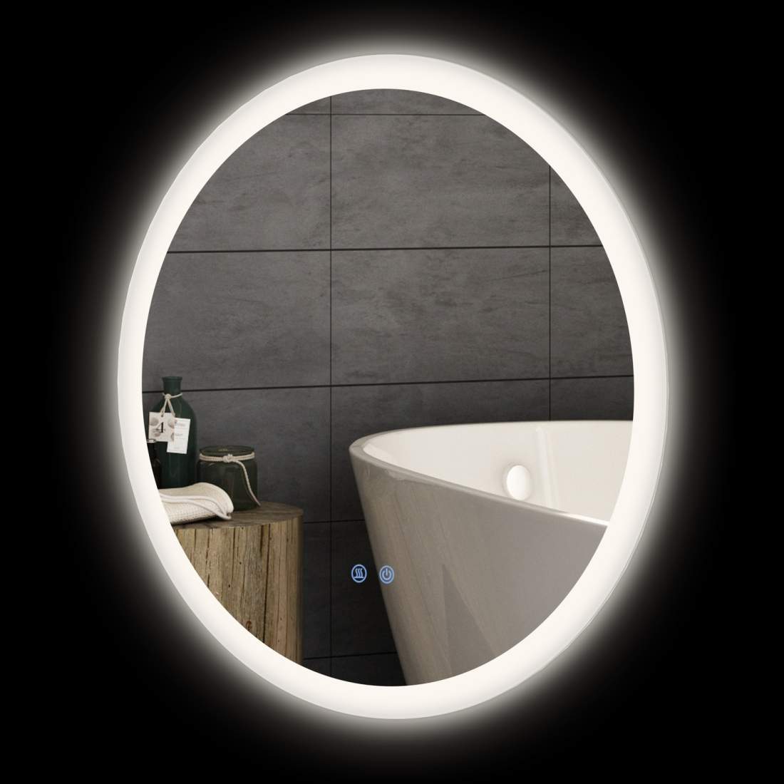 Sanitemodar LED-badrumsspegel 60 x 80 cm, oval badrumsspegel med belysning, väggspegel med trefärgade lampor, dimfria, touch-brytare