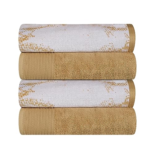 SUPERIOR Handduksset i bomull, enfärgade och med marmordesign, 4 badhanddukar, snabbtorkande, stora, mycket absorberande, mjuka, moderna dekorativa badrumstillbehör, dusch, bad och hem, brons