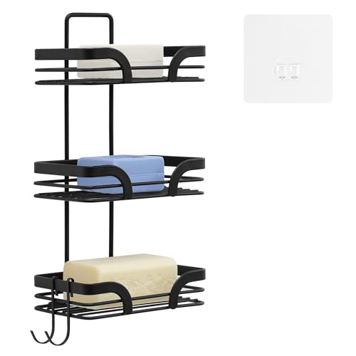 GRANNY SAYS Tvålhållare för dusch, 3 nivåer bar tvålhållare, tvålskål för dusch, rostfri duschtvålhållare med krokar, självdränerande tvålsparare, tvålskålar för att organisera badrumstillbehör