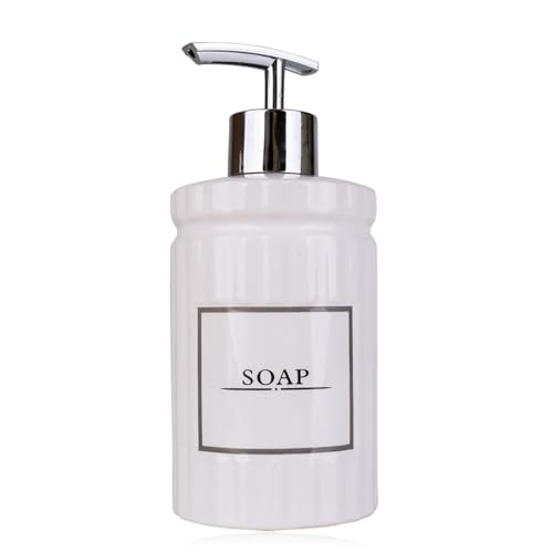 Accentra tvåldispenser vintage av keramik, vit med tryck SOAP, flytande tvål, badrumstillbehör för handfat, badkar eller dusch