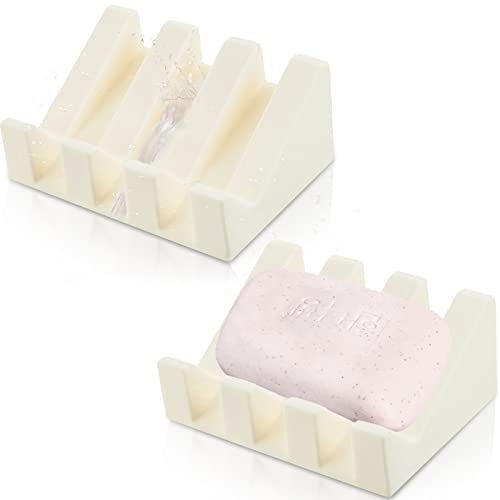 2 stycken silikon tvålskål självdränerande tvålskål dusch vattenfall bar tvålhållare bricka med avlopp tvålbesparare för kök badrumstillbehör (vit)