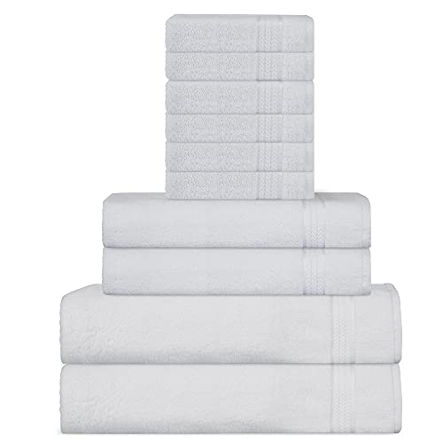 Supermjuk 600 GSM bomull handduksset, 2 badlakan, 2 handdukar och 6 tvätt-/ansiktsbehandlingar, dubbla lager, absorberande och fluffigt för badrumstillbehör, dusch och daglig användning (10 balar)