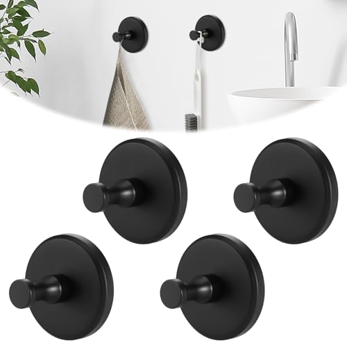 4 st sugkoppskrokar, 304 rostfria sugkrokar för badrum, ingen borrningshanddukskrok för badrum, återanvändbar badrumstillbehör, självhäftande krok för dusch glasdörrar, kök (svart)