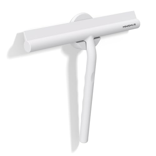 Minism duschskrapa – avdragare för dusch, badrum, kakel, speglar, fönster – inkl. magnethållare utan borrning, självhäftande – badrumstillbehör – modern design i elegant (21 cm, vit)