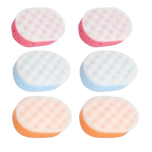 Homeshopa Badsvamp för vuxna, exfolierande kroppsduschskrubbare för män kvinnor barn barn, dubbelsidig kroppsmassagesvampar med 3 färger, rengöring exfolierande badtillbehör (paket med 6)