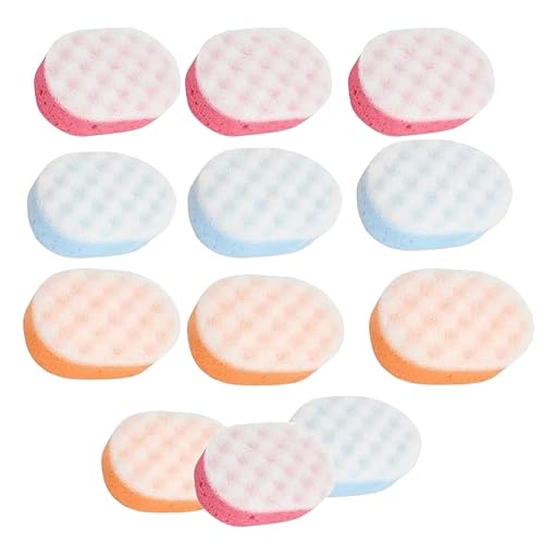 Homeshopa Badsvamp för vuxna, exfolierande kroppsduschskrubbare för män kvinnor barn barn, dubbelsidig kroppsmassagesvampar med 3 färger, rengöring exfolierande badtillbehör (paket med 12)
