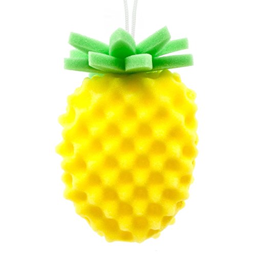 Meridiana Ananas eller jordgubbar fruktformad dekorativ nyhet badsvamp med hängande krok, 16 x 14 x 6,5 cm