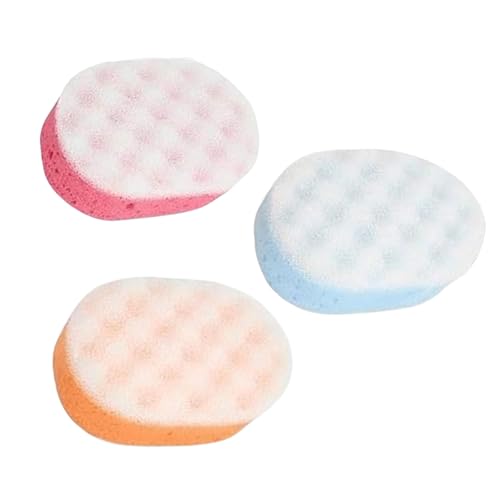 Homeshopa Badsvamp för vuxna, exfolierande kroppsduschskrubbare för män kvinnor barn barn, dubbelsidig kroppsmassagesvampar med 3 färger, rengöring exfolierande badtillbehör (paket med 3)