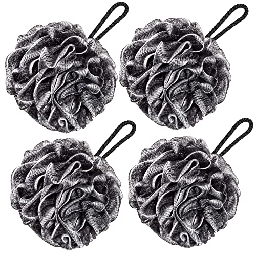 VANZAVANZU Badsvamp, stor 80 g, duschsvamp, kroppsskrubbare, nätpuff för män och kvinnor, set med 4 (svart)