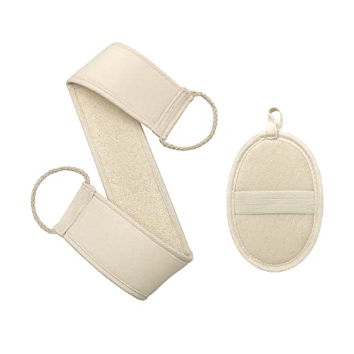 Pinkiou Loofah exfolierande ryggskrubbare med naturlig luffa dyna för kropp badsvamp naturlig exfolierande och djup ryggbricka för män och kvinnor dusch och bad spa 2 st