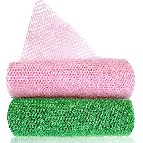 GEEHUA 2 stycken afrikansk nätsvamp, afrikansk peeling nät svamp, badsvamp tvättnät, lång nylon ryggtvättlappar, handduk för alla hud, daglig rygg kroppsskrubb (rosa, grön)