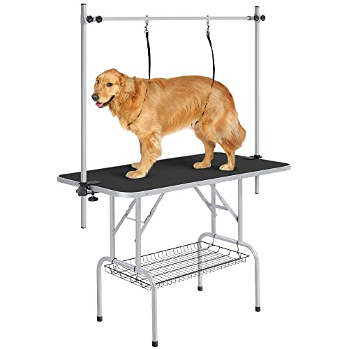 Yaheetech Höjdjusterbart trimbord för hundar stort, skurbord med 2 galgar, badtillbehör för hundar, hundvårdsbord vikbart 118 x 60 x 177 cm (L x B x H) reptåligt, max. lastkapacitet 120 kg