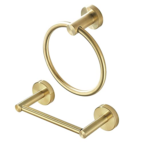 WEIKO Guld toalettpappershållare handduksring, borstat guld badrums hårdvaruset, handdukshållare väggmonterad näsdukshållare med dubbelstolpe badtillbehör SUS304 rostfritt stål 2 st
