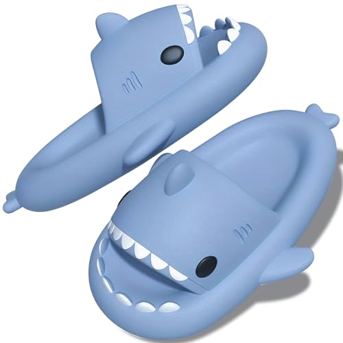 TOPALL Hai tofflor, hajtofflor, tofflor dam/män/barn, badtofflor, hajskor, hajtofflor, kudde, moln hajglides söta mysiga Sharky roliga badsandaler för sommar, blå, 36/37 EU
