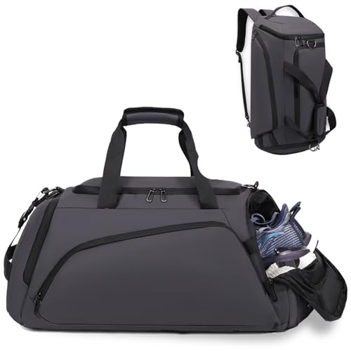 Clufar Sportväska för män med skofack och våtficka Stor 40L resväska Ryggsäck Grå Duffel Fitnessväska Träningsväska Fritidsväska Fotboll Gymväska Badväska Weekender för Bastu Fotboll