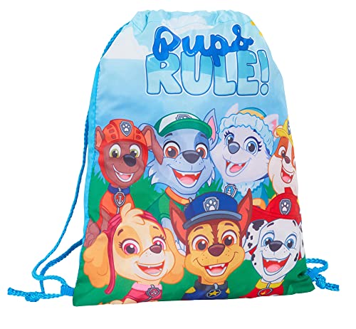 Paw Patrol Dragsko väska Marshall Chase PE kit tränare gymväska barn badväska barnkammare ryggsäck, Blå/grön, En storlek, Dragsko väska