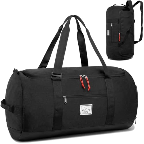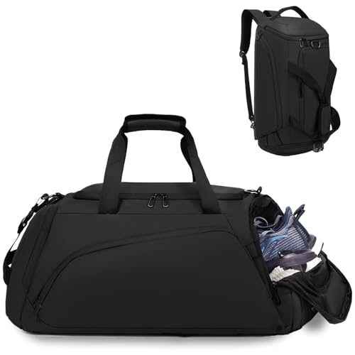 TAIHOYIN Sportväska Resväska + Ryggsäcksfunktion Träningsväska med Skofack för Sport, Fitness, Resor, Badväska, Gymväska, Män och Kvinnor, 60L, Svart