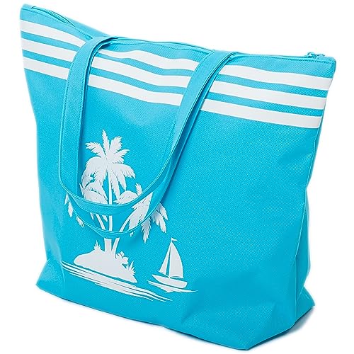 Lubardy Strandväska XXL familj badväska stor med dragkedja shopper damer stora strandväskor män strandväska enkel strandväska, blå och vita ränder, blå, 50.0 cm * 20.0 cm * 35.0 cm