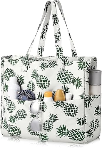FASBET Stor strandväska xxl med dragkedja lejonväska leopardväska lejon stor badväska vattentät strandväska xxl familj extra stor poolväska väska väska leopardmönster shopper, Ananas, L