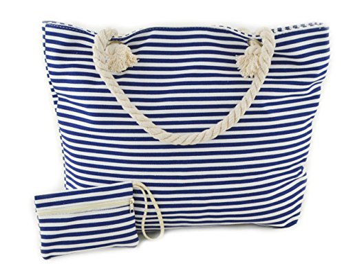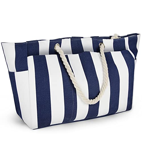 oscaurt Strandväska, randig, bärväska, badväska, vattentät, strandväska, stor med dragkedja, shoppingväska, damer, strandväska, XXL, familj, shoppingväska, axelväska, univäska, resväska, Mörkblå,