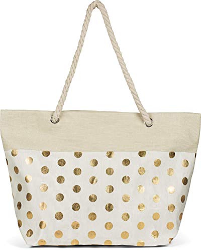styleBREAKER Stor strandväska med metalliska prickar tryck | Damshopper med dragsko och dragkedja | Badväska i boho-look | 56 x 38 x 17 cm, beige-guld, En Storlek