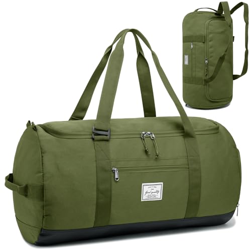 TAIHOYIN Sportväska Resväska + Ryggsäcksfunktion Träningsväska med Skofack för Sport, Fitness, Resor, Badväska, Gymväska, Män och Kvinnor, 60L, Grön