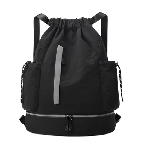 Gympapåse med dragsko, sportryggsäck, badväska, 46 x 34 x 15 cm, extra kapacitet, vattentålig utsida, vikbar och lätt, för skola, resor, gym, Svart, Refer to description