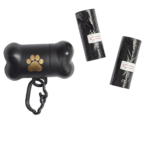 SHAOUMAN Metall hundbajspåsar hållare aluminium bajspåsar dispenser med husdjur avfallspåsar 3 koppellås och elastiskt rep för begagnade väskor (2 hållare 30 väskor,Svart)