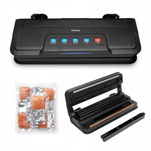huslog 110 W vakuum- och vakuummaskin med integrerad dispenser och filmskärare, dubbel svetsning 32 cm, -65 kPa, 6 torra och våta lägen, tjock/puls/tätning/pump, LED-skärm, för väskor och rullar