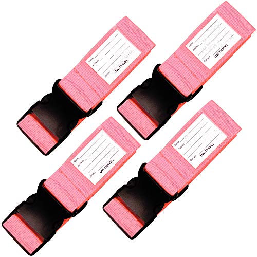 OW-Travel Personliga Bagageband för Resväskor (Rosa 4-pack) Lätt Att Upptäcka Robusta Resväskremmar med Bagageetiketter.Resebälte för Resväska Bagage. Väska rem Fodral Bälten Resväska Rem