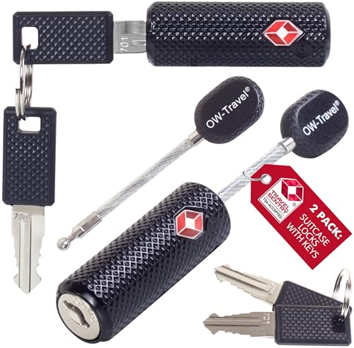OW-Travel TSA-godkända Kabellås Hänglås (Svart 2-pack) Resväskelås med nycklar. Kraftiga hänglås med resväska med zinklegering med nyckellås för bagage, väska, fodral, ryggsäck, gymskåp
